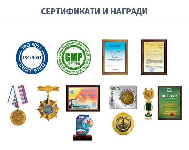 Продуктите на компания ТианДе са изцяло произведени в съответствие с международните стандарти и сертификати за качество по ISO 9001 и GMP.